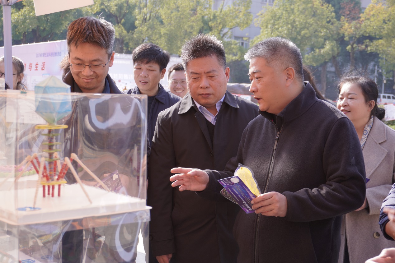 本网讯(通讯员 张灏)12月5日,化学与生命科学学院开展第五届“青科行动”科普宣教活动在行知广场进行。生物化学科普知识展览、互动实验、文创作品等一系列充满科学精神与文化气息的活动吸引300余名师生参与体验。校党委常委周忠到现场与师生们一起体验交流科学的神奇与魅力。