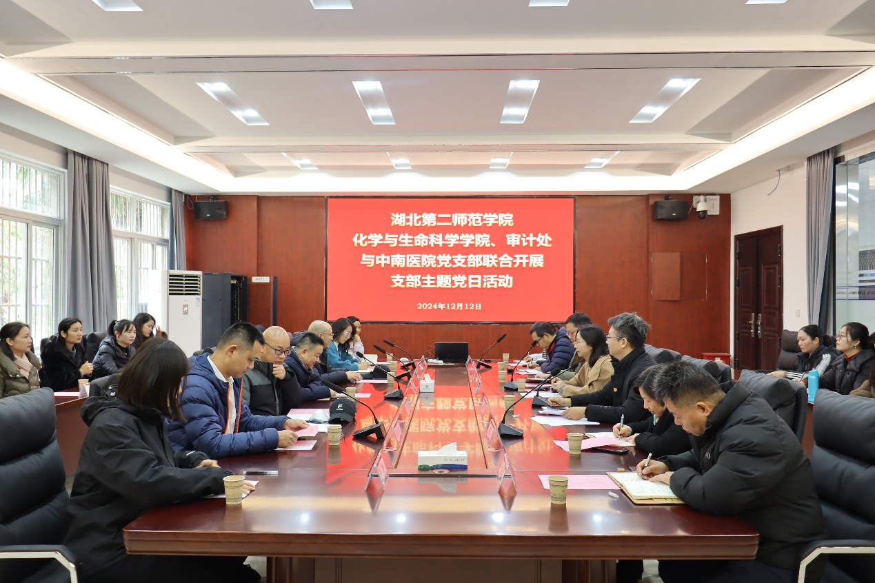 本网讯(通讯员 张灏)为深入学习贯彻党的二十届三中全会精神,充分发挥党建引领示范作用,促进专业深度交流融合,12月12日,我校化学与生命科学学院、审计处联合武汉大学中南医院开展“科技助力健康 创新引领未来”主题党日活动。本次活动由学院党委书记姜娜主持。