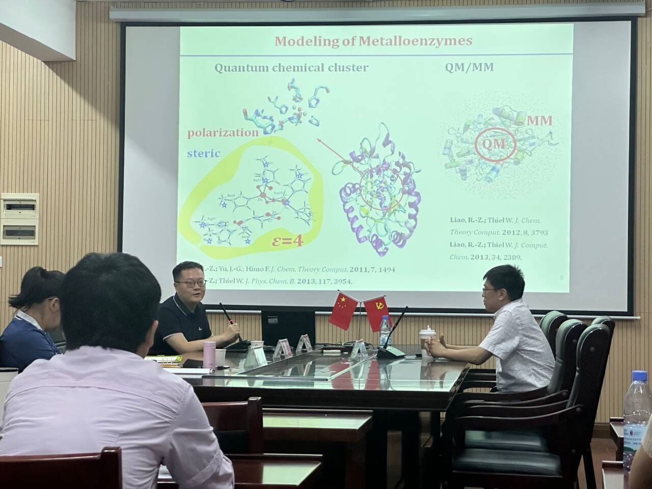 廖荣臻教授就氧化还原反应中,金属酶及金属配合物中金属的价态在生物化学中的重要作用展开报告。讲述了用量子化学方法和量子力学/分子力学组合方法揭示实验手段中难以确定的金属的价态和反应过程中的变价模式,揭示底物活化机制、选择性来源和金属自旋态与反应能垒之间的关系。