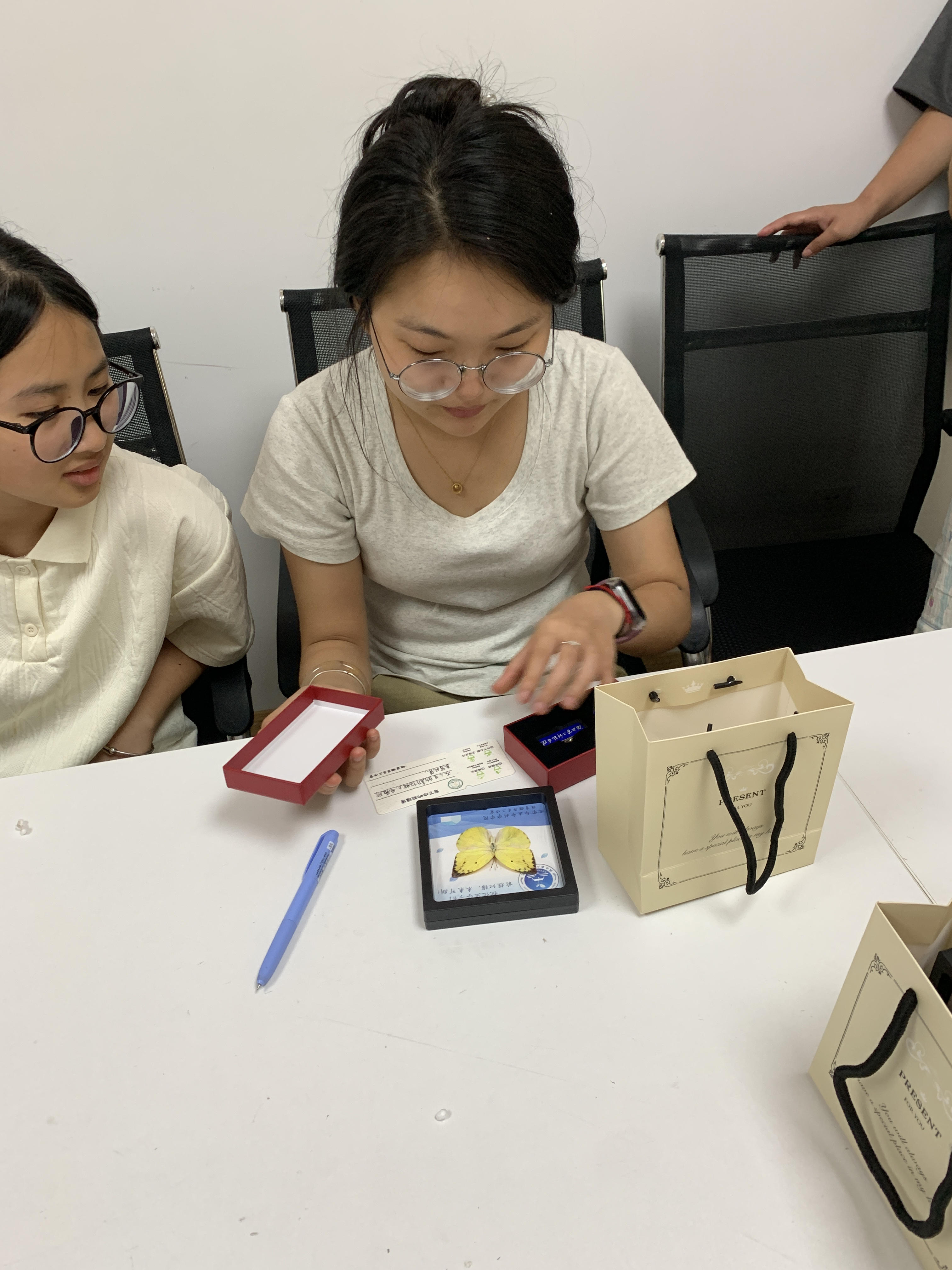 活动现场,同学们围坐在一起,专注书写祝福贺卡,一笔一划饱含对学长学姐的美好祝福,随后,大家又认真细致地分装纪念礼包。镌刻着母校印记的校徽、校标,承载着四年难忘的校园记忆;特别定制的精美蝴蝶标本,象征着破茧成蝶、展翅高飞的美好寓意。每一份精心准备的礼物,都凝聚着对毕业生们深深的祝福。