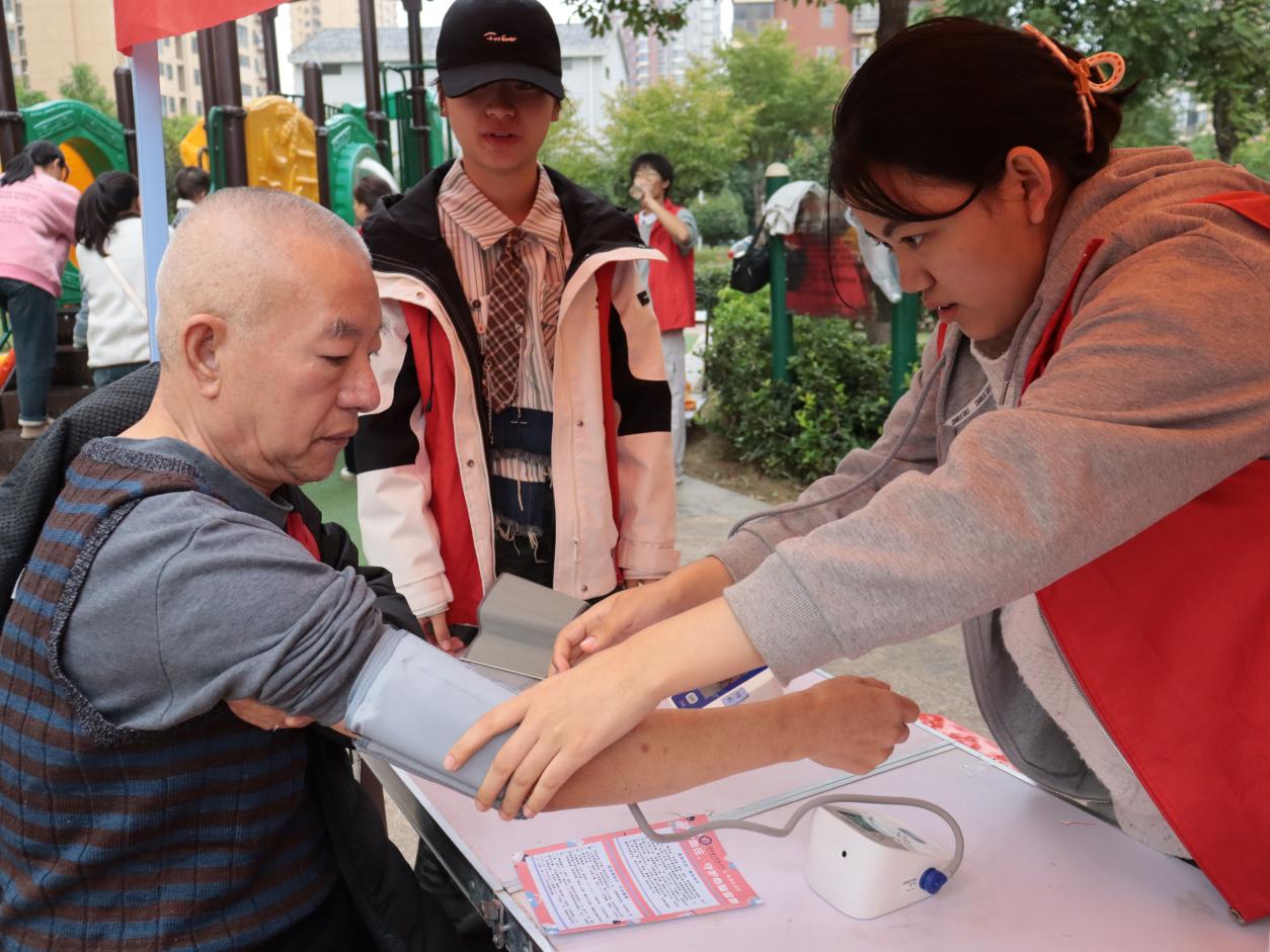 学院志愿者们为居民免费测量血压,详细记录数据,对血压正常的居民普及日常血压管理常识,对血压偏高或异常的居民,结合年龄、生活习惯给出个性化建议,如控制盐摄入、规律运动等。同时,志愿者用通俗语言讲解高血压形成原因、并发症危害及用药误区,用真实案例打破“高血压是老人专利”的认知误区,帮助居民建立科学防控意识。