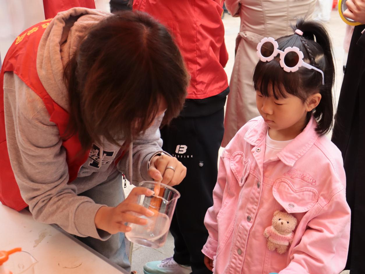 学院聚焦生活难题,以专业知识助力便民生活。展位上,志愿者们以居民常用的苏打、小苏打为核心,现场演示去油渍、除污渍的实用方法,直观呈现化学产品的清洁原理与使用技巧,让居民轻松掌握科学清洁方法。