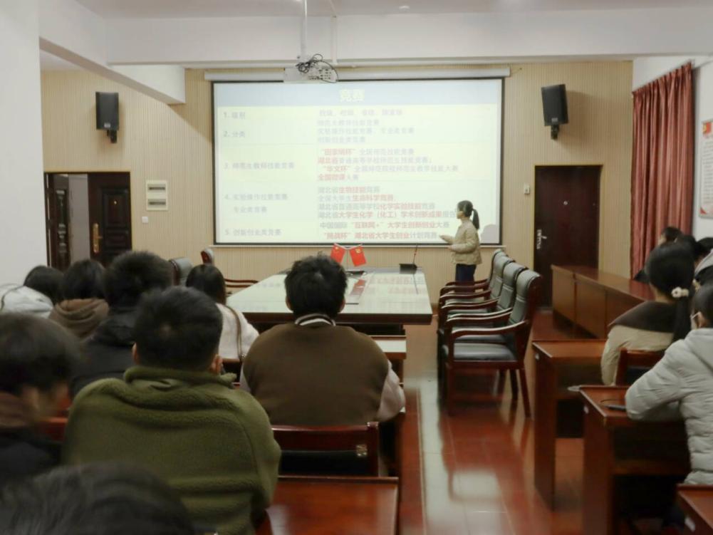 本网讯(通讯员 李佳瑞 赵霞榕)11月19日,化学与生命科学学院“一站式”社区青源驿站聚焦学子创新能力培养需求,特邀中国国际大学生创新大赛(2025)省赛银奖获奖作品指导老师张明星副教授,开展学科竞赛历程与心得专题分享会,为全院师生搭建起高效学习交流的备赛平台。