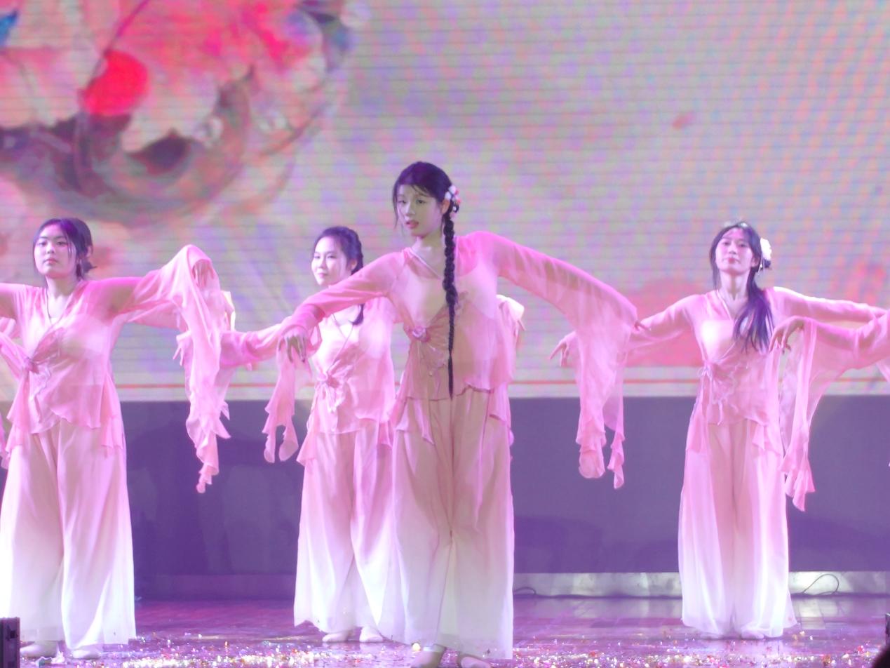 晚会伊始,化学与生命科学学院院长邓樱花教授登台致辞,随后各项节目在开场舞《相亲相爱》的欢快旋律中拉开帷幕,舞者们用灵动的舞姿瞬间点燃现场氛围。独唱《爱爱爱》以深情的歌声打动人心,小品《时间都去哪儿了》则通过诙谐的表演引发观众对时光的思考,《心动舞次元》的活力舞步更是将第一篇章的气氛推向高潮。