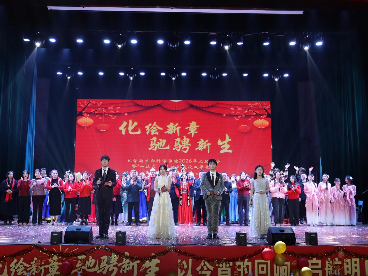 本网讯(通讯员 吴紫函 黄秋慧)12月26日,化学与生命科学学院“化绘新章 驰骋新生”2026年元旦晚会暨“一站式”社区文化建设成果展演在学校大礼堂精彩上演。整场晚会分为“回响·时光织锦”“共生·万象交响”“启航·绘就篇章”三个篇章,融合舞蹈、歌唱、小品、话剧、皮影戏等多样艺术形式。