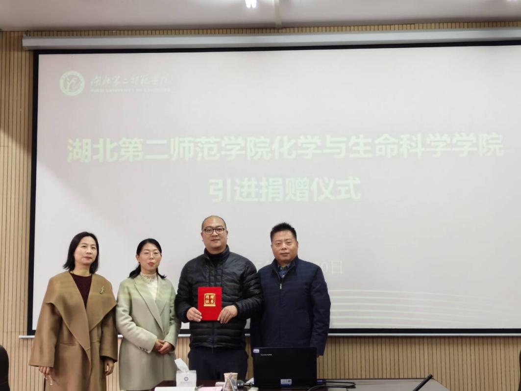 本网讯(通讯员 赵霞榕)12月30日上午,化学与生命科学学院引进捐赠仪式在会议室隆重举行。武汉立环医疗器械有限公司总经理李兵,学院党委书记姜娜,学院校友会会长、院长邓樱花,秘书长、副院长陈功轩出席仪式。