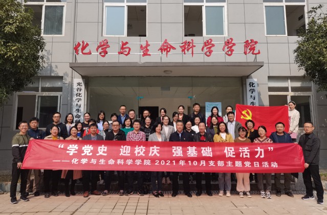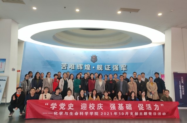 本网讯(通讯员 刘瑞) 为庆祝中国共产党建党一百周年、迎接湖北第二师范学院建校九十周年校庆,2021年10月28日下午,化学与生命科学学院(以下简称“本院”)全体党员教职工前往武汉市中山舰博物馆开展以“学党史、迎校庆、强基础、促活力”为主题的学习实践活动。本次支部主题党日活动由分党委书记严莉萍主持,党员职工、党外知识分子共40余人参加活动,校党委常委周忠出席。