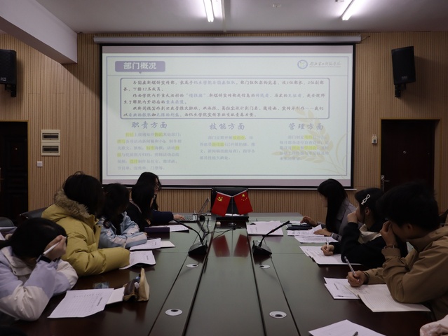 随后,由指导老师袁梦醒结合会议内容作指导讲话。她强调,团学工作汇报应创新形式,突破PPT单一载体,多采用视频、图片等可视化素材,增强内容的生动性与感染力;同时要求各部门部长在本学期活动组织中加强对新成员的带教与培养,做好经验传承与工作交接准备,为下学期换届交接奠定坚实基础。